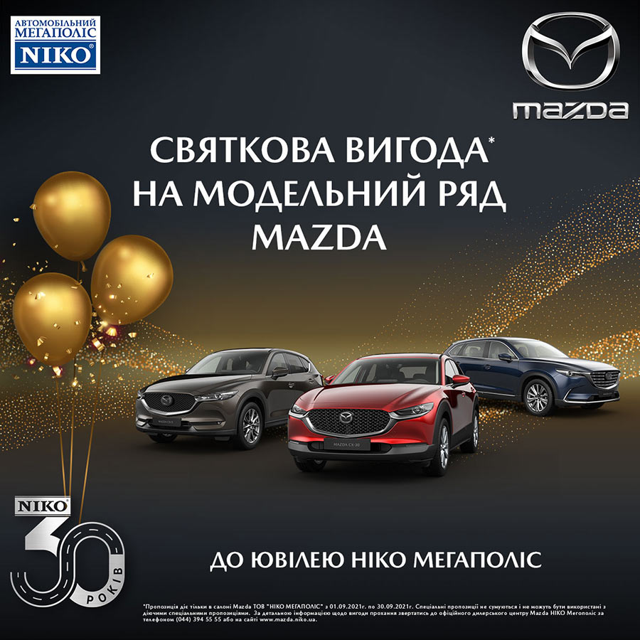 Святкова вигода на весь модельний ряд Mazda до 30-річчя компанії «НІКО»!