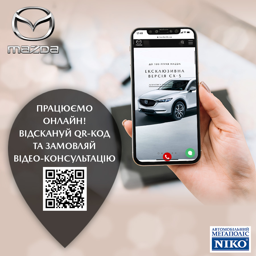 У зв’язку з запровадженням додаткових заходів безпеки з метою попередження розповсюдження коронавірусу Covid-19 дилерський центр Mazda «НІКО Істлайн Мегаполіс» тимчасово працює БЕЗ ВІДВІДУВАННЯ КЛІЄНТІВ у форматі Online за скороченим графіком.